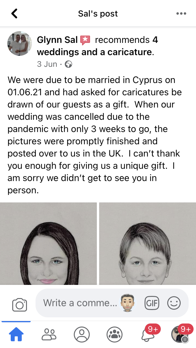 Allow us to make you a lovely personalised portrait or caricature, right here at our very own art studio.